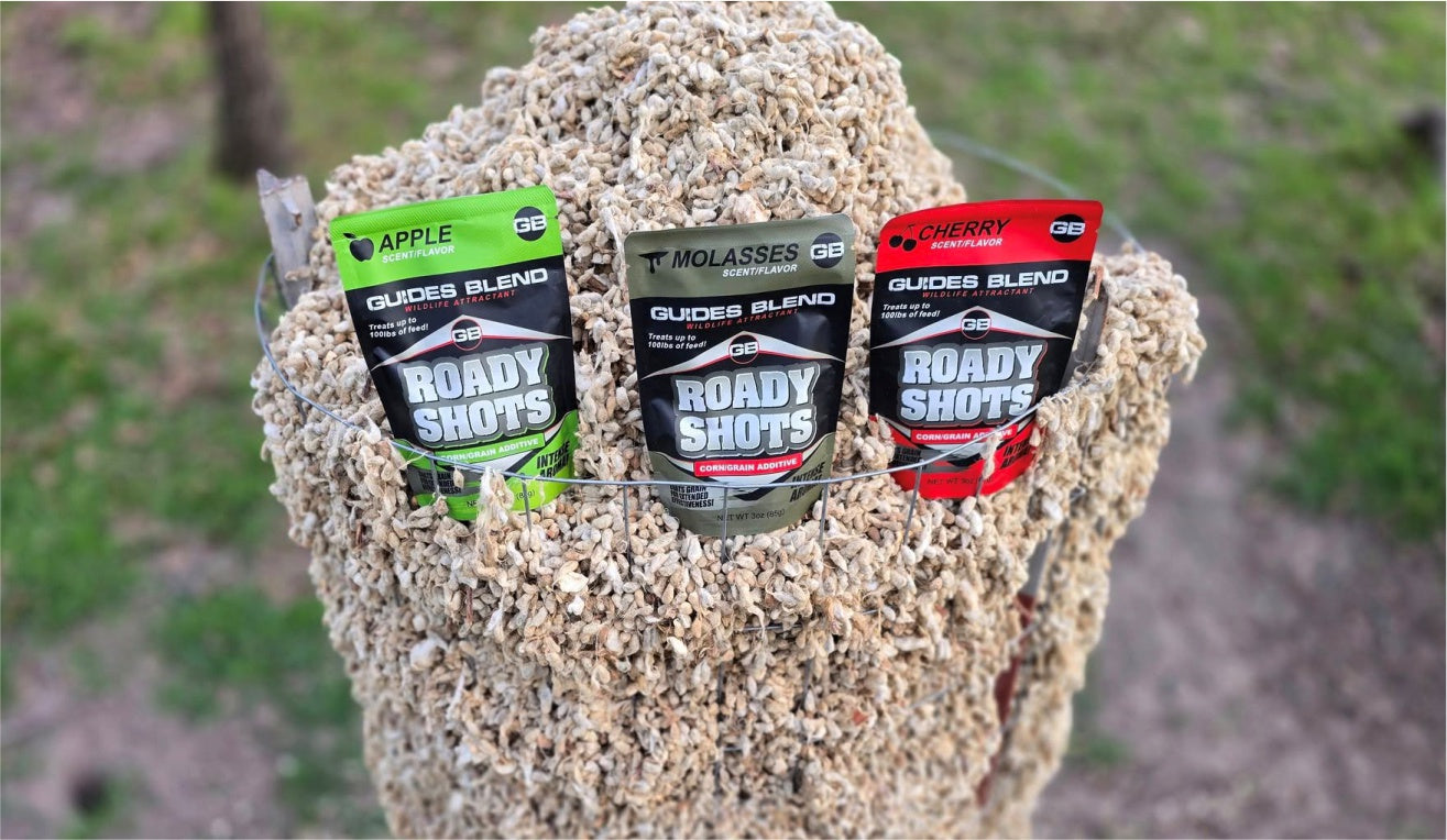By adding Guides Blend SHOTS (grain coats) We have the flavor that will bring your deer herd to virtually any grain. The "FIND YOUR FLAVOR" 3 pack of Roady shots gives you the chance to try all 3 Guides Blend flavors for a cheap test run.