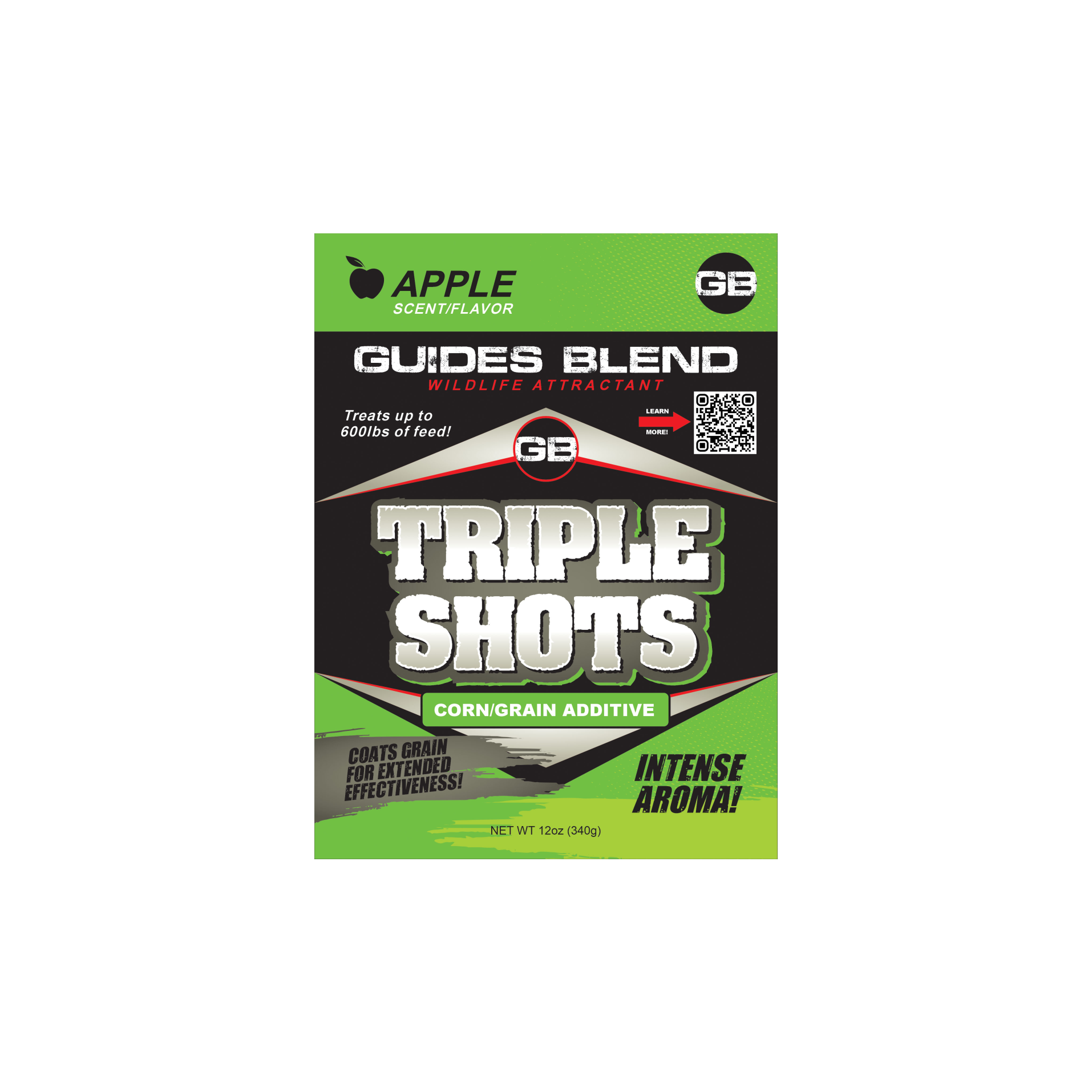 One of the big questions we were asked for the first 2 years of this Journey was "can I put it in my feeder"? In short, the answer is NO. Guides Blend 5lb bag attractants are made to put out on the ground and soak into the soil for a longer lasting attractant. After much consideration to the demand of having an attractant in a feeder, we are pleased to introduce to you TRIPLE SHOTS! This guaranteed no cake, no gunk, no mold grain coat is designed to mix in with your corn, cottonseed, soybeans, protein pellets, or any other grain you are trying to feed. Trying to start deer on soybeans or cottonseed? No problem with feeder shots. We get it deer like corn, well if you feed corn and your neighbor is feeding corn it is a coin flip where the deer will go. Creating the advantage and getting deer locked onto the best feed is the name of the game. One 12 oz. feeder shot will treat between 400-600lbs of grain. 600lbs of attractant for $15.99 is unheard of, until now.